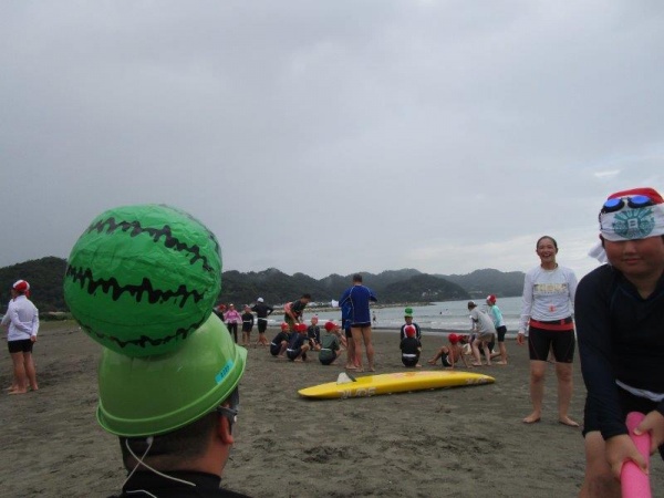 90分の遠泳を泳ぎ切り、再び浜へ。