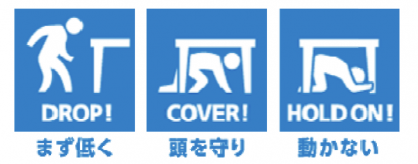 避難訓練のようにグランドに避難はしませんが、地震が起きた際この3つの安全行動をすぐに行うことが、「自分の命は自分で守る」ことに繋がります。