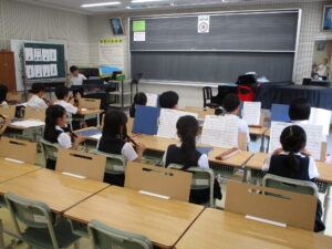 今週、3年生のクラスごとに3日間、それぞれのクラスのリコーダーパートの子が昼休みに音楽室に集まって、メロディや音を出すタイミングをていねいに指導されていました。
