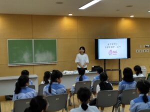 今日、お招きした、株式会社ワコールの講師の先生に、昨年度までは4~6年生女子児童とその保護者の方々を対象に希望性で下着の選び方を中心に夏休み前にツボミスクールを行っていただいていましたが、今年度からは初の試みとして、昨今のジェンダー平等社会の実現に向けた流れの中で、お互いの思春期のからだの成長、プライベートゾーン、下着の種類と役割、下着のお手入れ方法などについて、保健体育の授業に加えて男女一緒に繰り返し学ぶ意義を感じ、実現する運びとなりました。