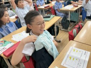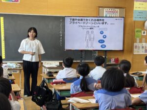 その後、配られた、思春期のからだの成長のワークシートを使った学習やプライベートゾーンについては、保健体育の授業で習った内容の復習ということもあって、子ども達は積極的に挙手して発表したり、○×クイズにも正解できていました。