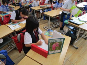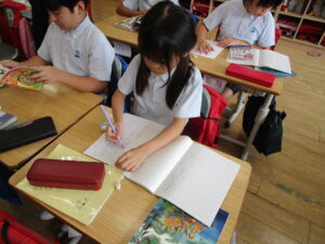 授業で学んだことを活かして子どもたちは、家族の皆さんを日出祭に招待するための案内状を書きました。