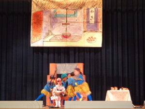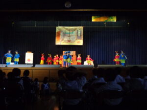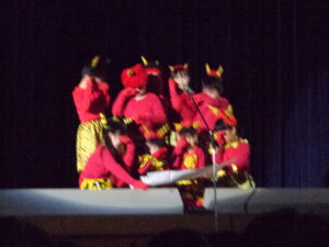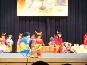 The Second-Grade students showed us a play with good red demons and bad blue demons who cause trouble for people in the village.