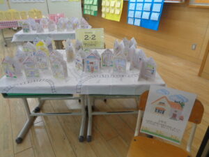 “My House” by grade 2. The students wrote sentences about their families (e.g. This is my mother. She is in the kitchen. She is cooking). They drew pictures and decorated their houses so beautifully.