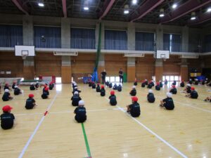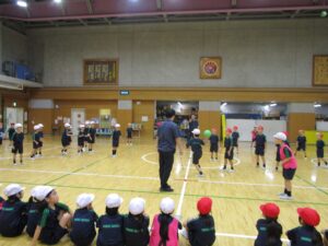 元外野やジャンプボールを決め、いろいろなルールの説明を聞いて試合を行いました。