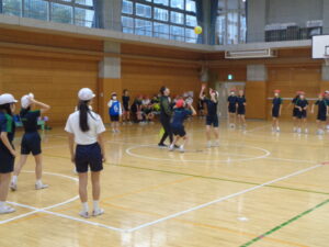 練習中のコートでは、仲間を守るように前に出てキャッチする子、遠くから狙いを定めて投げる子、素早くよける子など、それぞれが自分の役割を果たそうと一生懸命です。