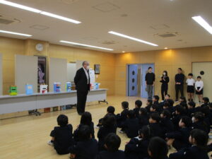4年生からは、各教室に置く郵便受けを渡してもらいました。