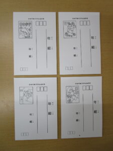 6年生が一人ひとり丁寧に描いた切手。その中から選ばれた作品が、実際使うはがきにプリントされています。