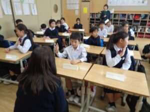 先週の火曜日から金曜日まで、3年生と4年生は手話教室をそれぞれ計4時間行いました。