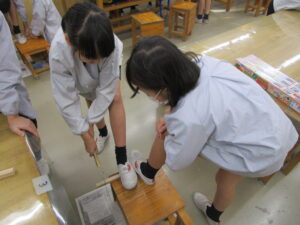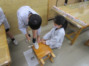 4年生は図工の授業で、のこぎりを使って、作品を作成中です。
