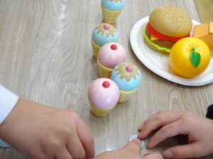 Make sure to give the customer the strawberry icecream, and don’t forget to give correct change.It’s a bit tricky to do maths while speaking English,but all the students tried hard.