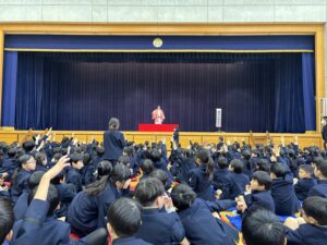 低学年は3・4時間目、高学年は5・6時間目にアリーナ1に集まって鑑賞しました。