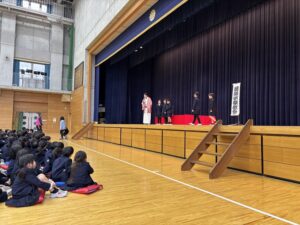 低学年は3・4時間目、高学年は5・6時間目にアリーナ1に集まって鑑賞しました。