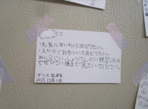 多目的ホールの入口には、ダンスを踊る児童たちの気合いの入ったコメントカードが飾られていました!