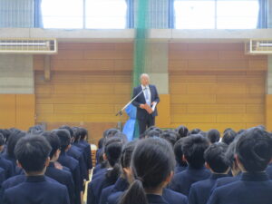 今日は2025年12月23日、日出学園小学校の2学期の終業式です。