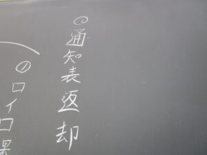 通知表を見て、ガッツポーズをする児童やじっくりと読み込む児童様々でした。