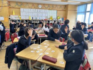 先生が言った英語を聞き取って、パッと絵札を取ります。