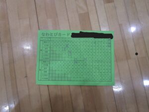 高学年では、2〜3人のグループで「なわとびカード」を使いながら練習しています。