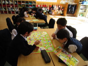 昔から日本に伝わるボードゲーム(むかしあそび)(1年 生活科)