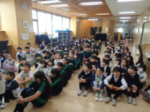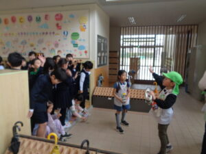 3年生の学級委員が司会をして会は進められ、その後、小学校校内の案内を行いました。