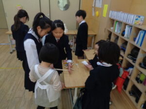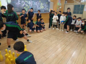 さらに、3年生の各クラスがゲームを作り、年長さんに遊んでもらいました。
