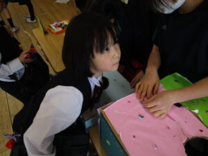 1年生は、2年生に優しく教えてもらいながら、思い思いに遊びを楽しんでいました。