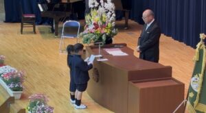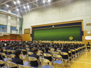 先生のお話の後に、場所をアリーナにかえて、いよいよ式が始まりました。