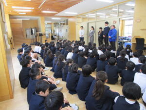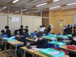 朝の支度を整えたら、3年生で初めての学年集会です。