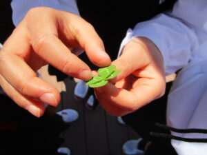 まだ小さい3年生の手の中に、幸せの四葉が1つ。
