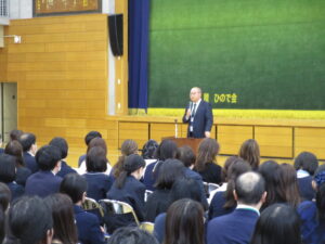 高学年と低学年の懇談会の間に行われた全体会では、学園長、校長、児童部長より、今年度の教育方針や子どもたちの学校生活の指針についてのお話、担任・副担任の紹介をさせていただきました。