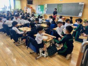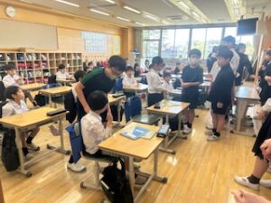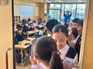 The Grade 2 students are very excited to welcome the grade 6 students to the class.
