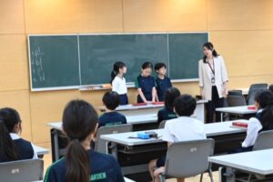 日出学園小学校では、3年生以上の学級で学級委員を男女1名ずつ選出し、各学級で話し合った現状や課題、解決策について月に1回クラスの代表として集まって共有する会議「代表委員会」が開かれます。