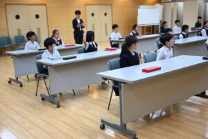 昼休みの多目的ホールをのぞくと、なにやら真剣な面持ちで座る子どもたちの姿が。