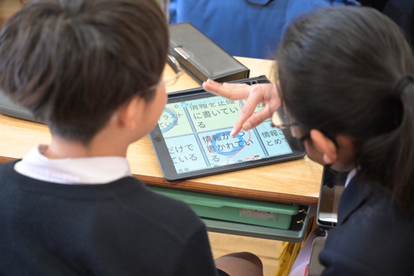 4年生の教室をのぞくと、黙々とタブレットに向かう子どもたちの姿がありました。