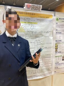 当日は12:10頃に昭和学院中学校・高等学校のメインアリーナで発表開始。約45分間、心温かい様々な方々にご覧いただきアドバイスや鋭い質問などをいただくことができ、とても充実した時間でした。