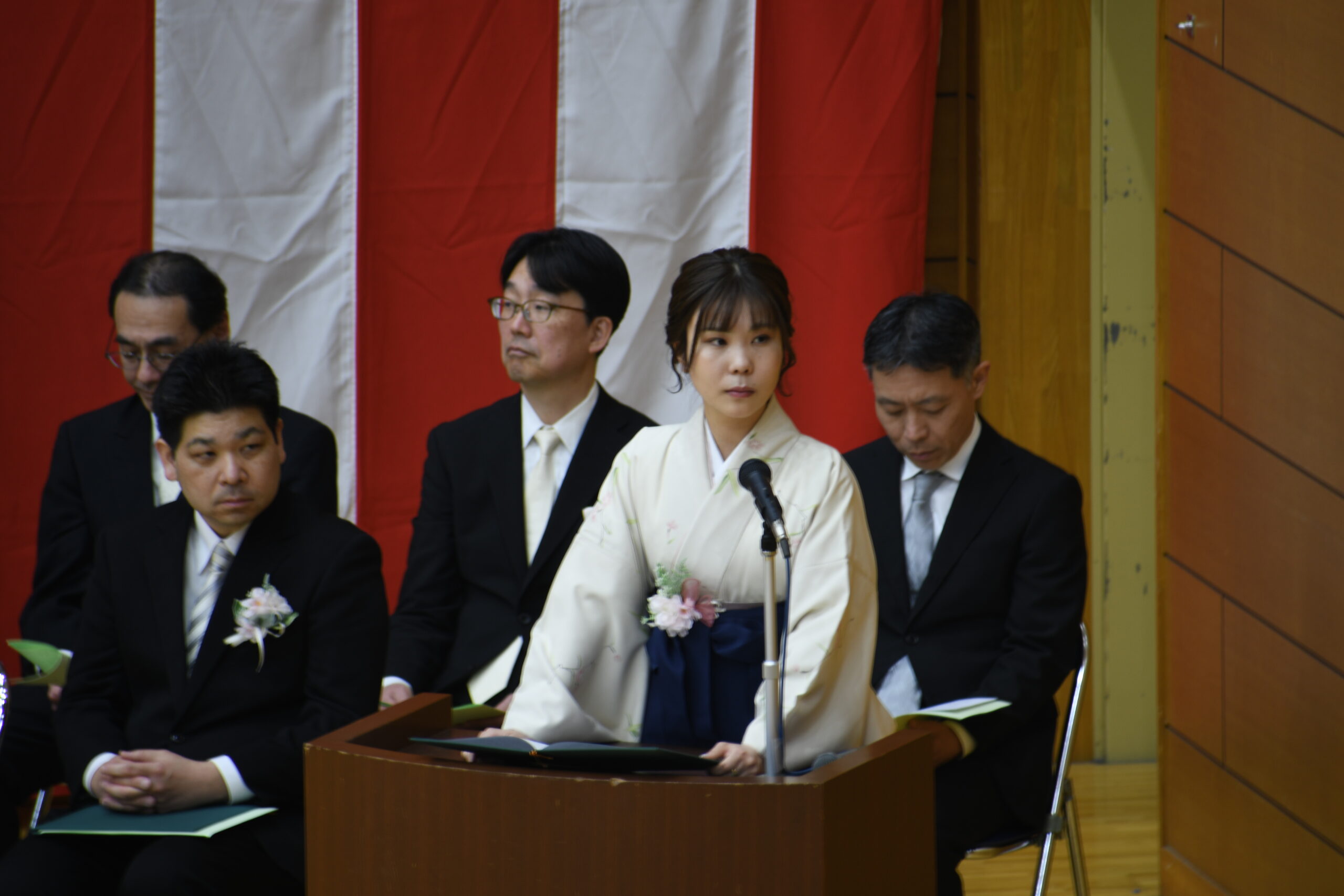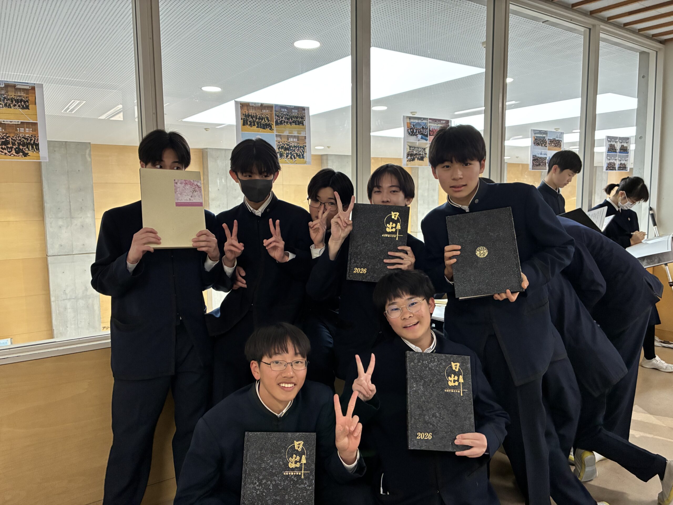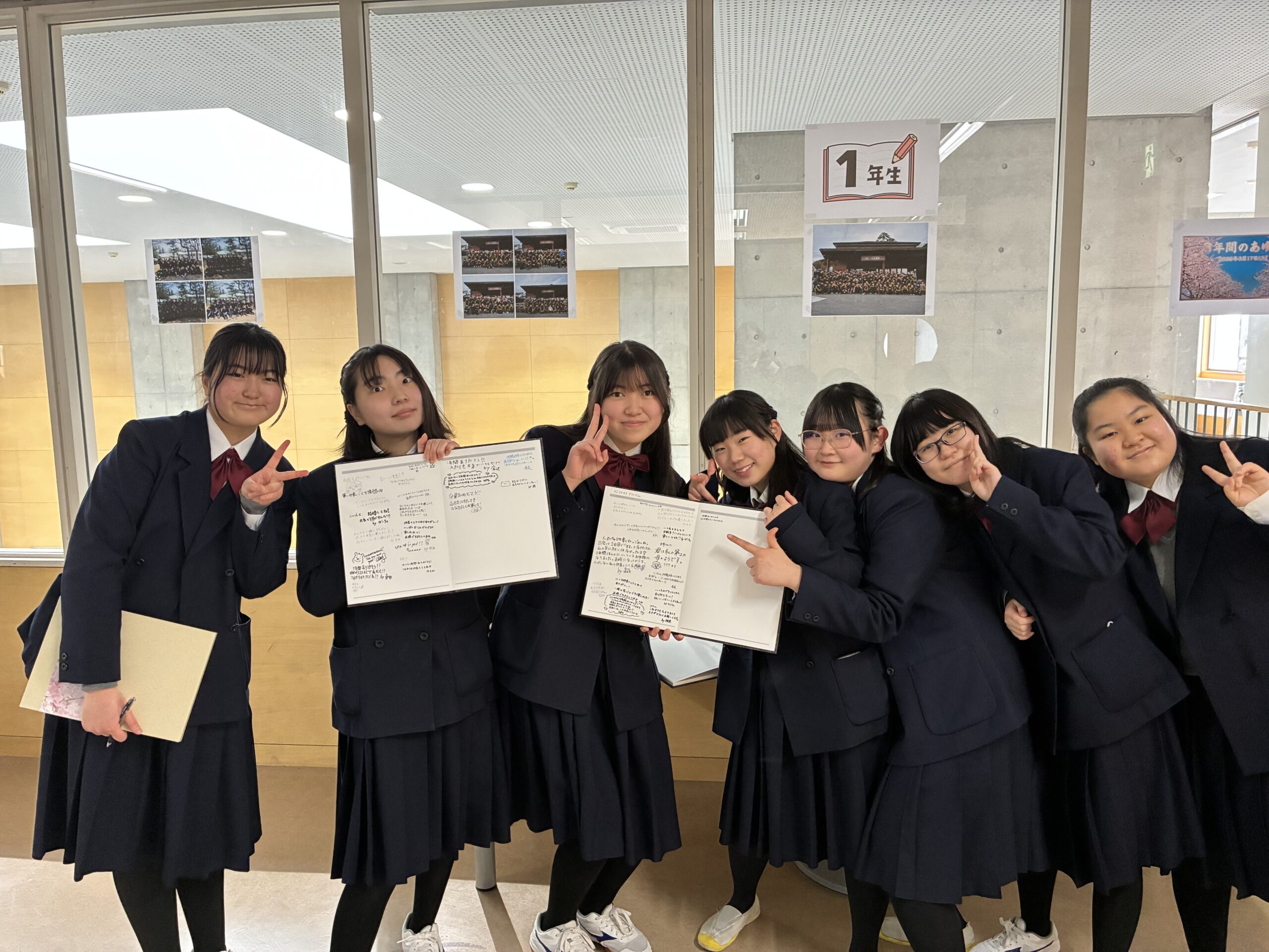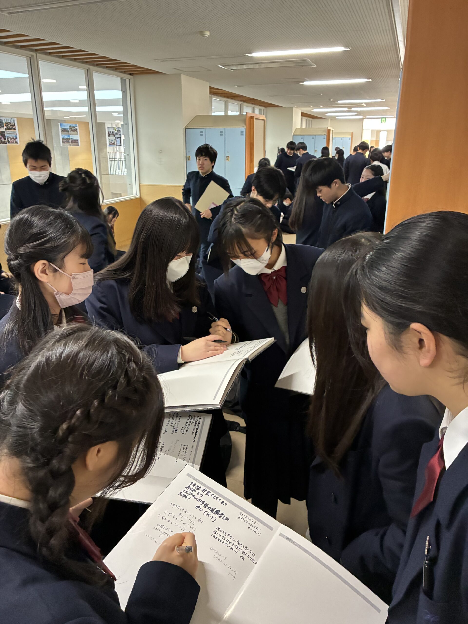 式典前にはみんなで配られた卒業アルバムに友人へのメッセージを書き入れるなど、思い思いの時間を過ごしました。