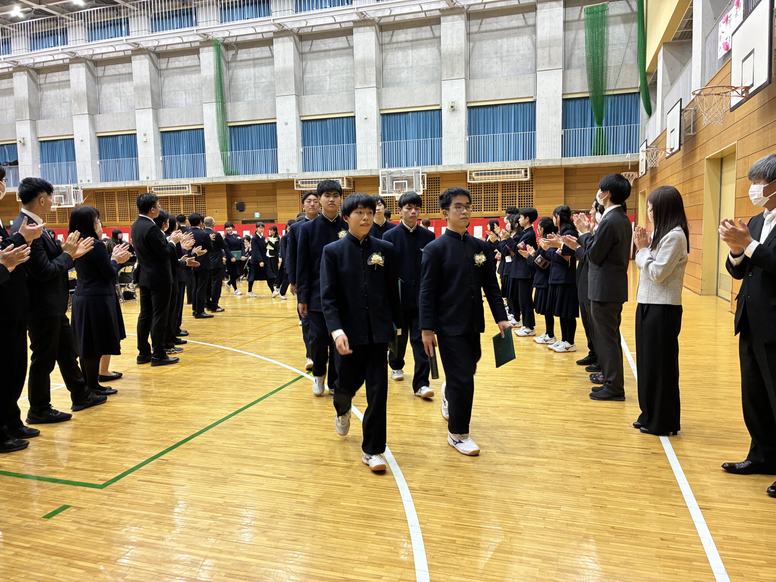 卒業式と言えばやっぱりこれですよね。教員一同による花道。ここで堪えきれなくて涙を流す生徒も!