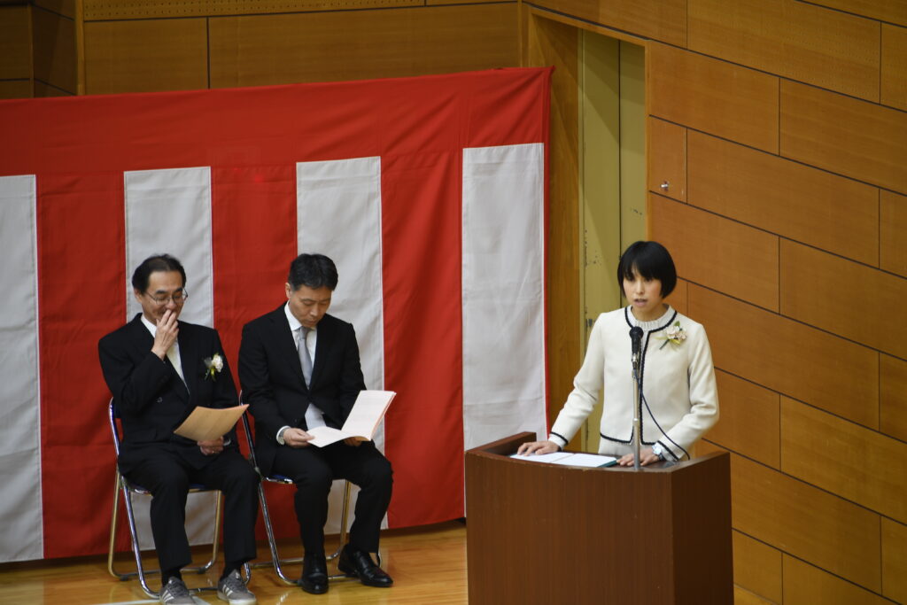 在校生代表生徒による歓迎の言葉。「予測不能な混迷を極める時代でも学校でつくる友人や思い出の価値は変わらない!」という力強い言葉もありました!
