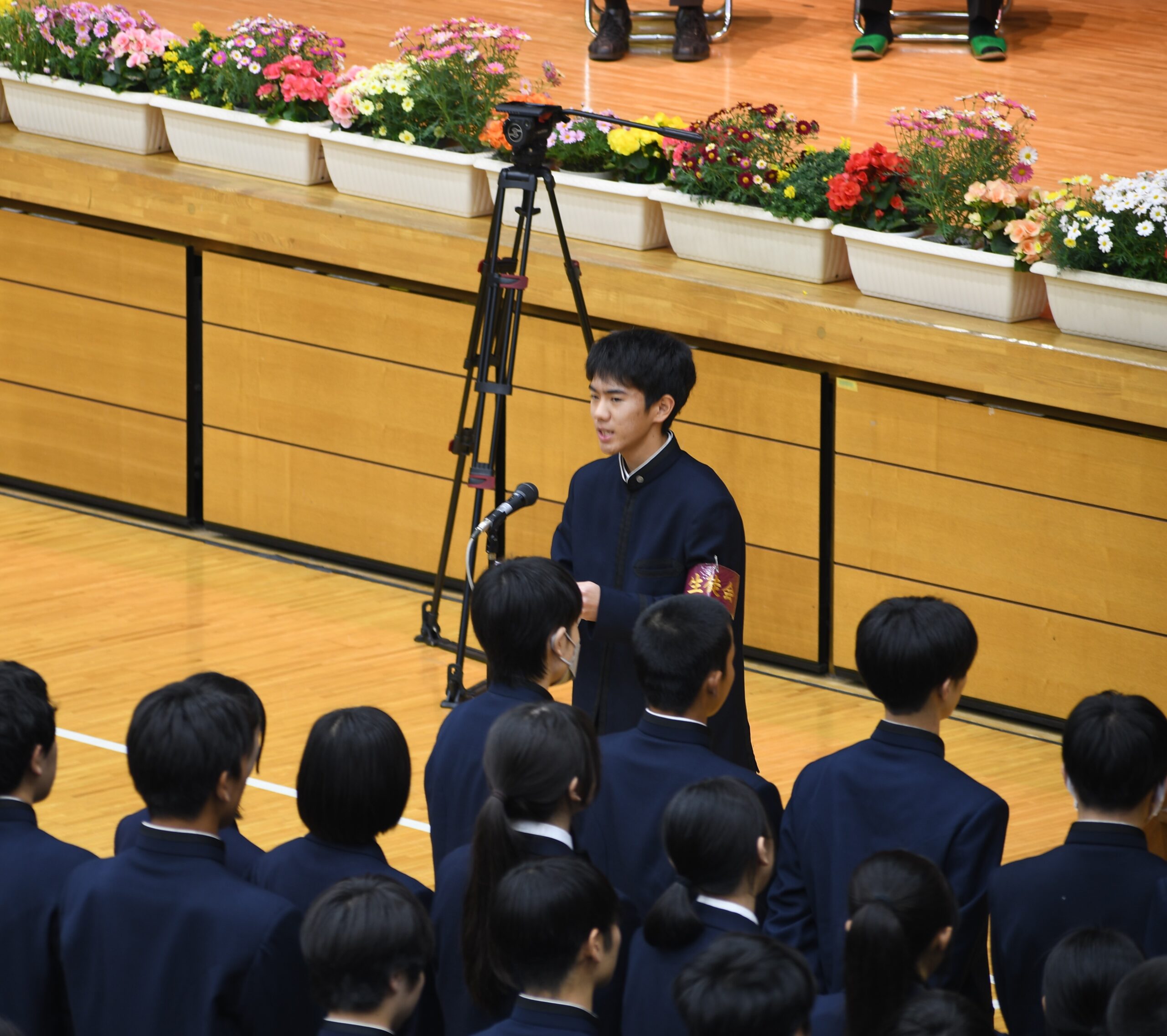 在校生代表生徒による歓迎の言葉。「予測不能な混迷を極める時代でも学校でつくる友人や思い出の価値は変わらない!」という力強い言葉もありました!
