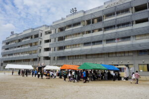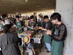 肉巻きおにぎり、唐揚げ、オムライス、チュロス、クレープなどお昼時に限らずいつも賑わっていました。