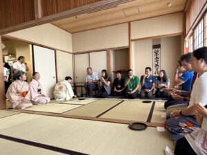 先生方も参加した茶席。時季にあわせ、掛物、茶器、茶碗など、お月見のしつらえでした。