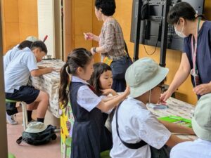 キーホルダーと缶バッチをみんな和気あいあいと製作していました。