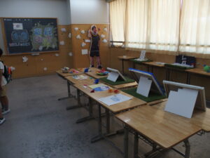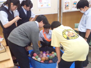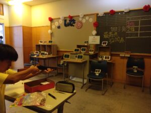 神社の縁日を教室で再現し、子どもから大人まで童心に返って遊んでいました。