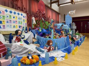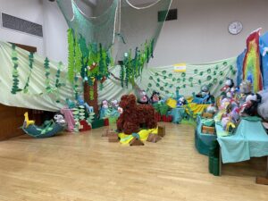 みんなで協力して多くの生き物製作を頑張りました。時間のかかった自分人形も。細かい部分まで再現されていて素晴らしかったです。