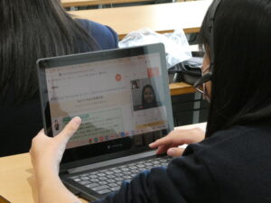 樋口先生のお話のとおり、オンライン英会話を楽しんでいる生徒が多く見られました。なかにはパソコンの画面越しに会話が盛り上がっている生徒も!普段の英語学習に加えて、生きた英語に触れられる機会があるのはとても良いことだと感じました。