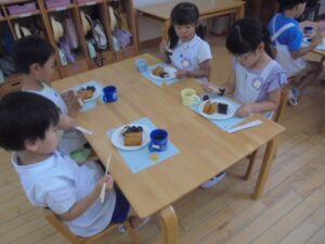 年中さんはごま稲荷2個、かんぴょうの細巻き1個、太巻き1個でした。