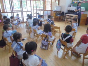 年中さんは、お帰り前のひととき、紙芝居でも「金太郎」を見ていました。