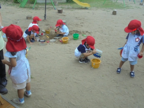 こちらは年中さん、日出祭に向けて製作をどんどん張り切っていました。友だちとの遊びも盛り上がっていました。