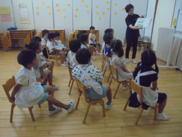 年少さんは帰る前にみんなでお話を聞いたり、手遊びをしたり、