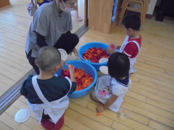 年中さんは1日のメリハリが分かってきているので、動いたり、静かに遊んだり、それぞれ楽しんでいました。